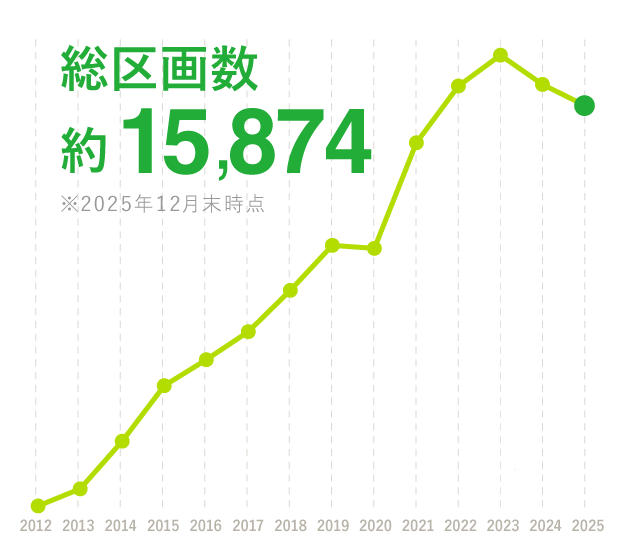 これまで日本最多の15,874区画を開設し、多くの土地オーナー様にご満足頂いております。